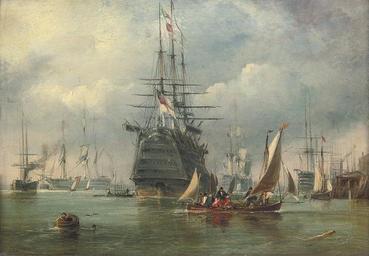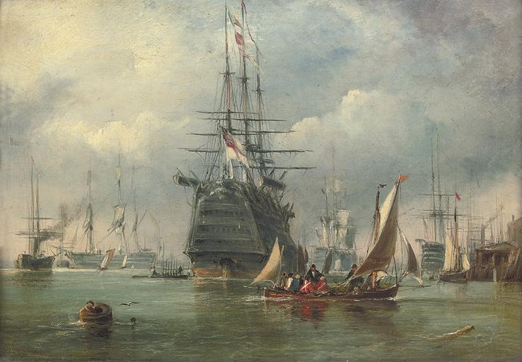 | View Original: | George_Chambers_-_A_large_First_Rate_and_other_warships_lying_in_the_harbour_at_Portsmouth.jpg (1475x1024) | |||