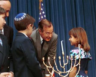 MAKE A MEME View Large Image George HW Bush menorah.jpg en President George H W Bush speaking with children at 1991 White House Staff Hanukkah Menorah lighting Photo owned by National Archives and Records Administration NARA public domain http //georgewbush-whitehouse ...
