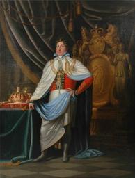 | Keywords: George IV as Knight of Hanoverian Guelphic Order.jpg author c 1815 Oil on canvas cm 273 208 unknown http //www wilnitsky com/scripts/redgallery1 dll/details No 26575 other versions PD-old-100 DEFAULTSORT 1818c; George IV 19th-century unidentified painters 19th-century portrait paintings location missing George IV in painted portraits 1810s oil on canvas paintings Portrait 1810s portrait paintings Male 19th-century oil portraits of standing men at full length in ceremonial robes Ceremonial robes of chivalric orders Columns in portrait paintings Crown jewels of Hanover Drapery in portrait paintings Left hand on hip in portrait paintings Livery collars in art Portrait paintings of men with crowns on cushions Portrait paintings of standing men with hands resting on tables Sculptures in portrait paintings Royal Guelphic Order Tassels in portrait paintings |