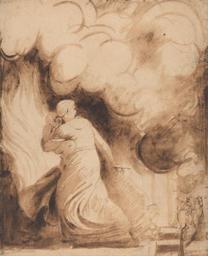 | Keywords: George Romney - A Mother with Her Child in Her Arms Flying upon the Ramparts of a City in Flames (Lady Hamilton as "... - Google Art Project.jpg Not on View Brown ink with brown wash on medium slightly textured beige laid paper arms horse animal flames mother child baby man woman fire smoke ramparts dress kerchief figure study genre subject historical subject special url_id ZwGDJzVoU_NbxQ PD-old-100-1923 1802 Google Art Project works by George Romney Drawings by George Romney | ||||