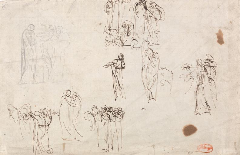 | Keywords: George Romney - Sketches for "The Accusation of Susanna" - Google Art Project.jpg Inscribed in graphite upper left 144 ; lower left 1 Not on View Brown ink with graphite on medium slightly textured cream laid paper women men figures cloaks sketch figure study historical subject special url_id XgHkF-k0xDmDfw PD-old-100-1923 1802 Drawings by George Romney Google Art Project works by George Romney Susannah | ||||