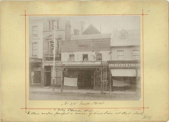 | Keywords: archives state records nsw staterecordsnsw newsouthwales blackandwhite sydney george street georgestreet people text black and white No. 278 George Street - showing wooden parapet Dated: 5/12/1884 Digital ID: 745_a019_a019000005 Rights: www.records.nsw.gov.au/about-us/rights-and-permissions In 1879 The City of Sydney Improvement Act was constituted as a result of the findings of the Sydney City and Suburban Sewage and Health Board regarding the poor condition of buildings and sanitation within the City of Sydney due to a lack of proper legislation and codes of building practice. The City of Sydney Improvement Board was appointed to execute the Act. These photographs, taken by private photographers for the Board, show buildings in need of repair or undergoing alterations, as well as views of streets showing the condition of awnings, signboards and walls of shops, hotels and private residences. We'd love to hear from you if you use our photos. Many other photos in our collection are available to view and browse on our website using Photo Investigator. No. 278 George Street - showing wooden parapet Dated: 5/12/1884 Digital ID: 745_a019_a019000005 Rights: www.records.nsw.gov.au/about-us/rights-and-permissions In 1879 The City of Sydney Improvement Act was constituted as a result of the findings of the Sydney City and Suburban Sewage and Health Board regarding the poor condition of buildings and sanitation within the City of Sydney due to a lack of proper legislation and codes of building practice. The City of Sydney Improvement Board was appointed to execute the Act. These photographs, taken by private photographers for the Board, show buildings in need of repair or undergoing alterations, as well as views of streets showing the condition of awnings, signboards and walls of shops, hotels and private residences. We'd love to hear from you if you use our photos. Many other photos in our collection are available to view and browse on our website using Photo Investigator. |
