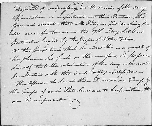 Keywords: u.s. national archives usnationalarchives today's document todaysdocument march march 16 march16 march 16, 1780 march161780 03/16/1780 03161780 nara:arcid=300356 geoge washington geogewashington st. patrick's day stpatricksday holiday order text blackandwhite writing monochrome document texture abstract black and white Title: George Washington's General Order of March 16, 1780, granting Saint Patrick's Day as a holiday to the troops., 03/16/1780 - 03/16/1780 Production Date: March 16, 1780 George Washington's General Order of March 16, 1780, granting Saint Patrick's Day as a holiday to the troops., 03/16/1780 (ARC ID 300356); Numbered Record Books, 1894 - 1913; War Department Collection of Revolutionary War Records, 1709 - 1915; Record Group 93, National Archives. Persistent URL: arcweb.archives.gov/arc/action/ExternalIdSearch?id=300356 Access Restrictions: Unrestricted Use Restrictions: Unrestricted Title: George Washington's General Order of March 16, 1780, granting Saint Patrick's Day as a holiday to the troops., 03/16/1780 - 03/16/1780 Production Date: March 16, 1780 George Washington's General Order of March 16, 1780, granting Saint Patrick's Day as a holiday to the troops., 03/16/1780 (ARC ID 300356); Numbered Record Books, 1894 - 1913; War Department Collection of Revolutionary War Records, 1709 - 1915; Record Group 93, National Archives. Persistent URL: arcweb.archives.gov/arc/action/ExternalIdSearch?id=300356 Access Restrictions: Unrestricted Use Restrictions: Unrestricted |