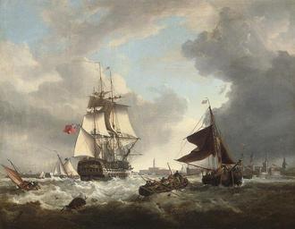 | Keywords: George Webster - A '74' shortening sail as she passes through the entrance to Portsmouth harbour.jpg oil canvas cm 53 4 68 6 object history credit line signed 'G Webster' lower right and inscribed 'Portsmouth' lower left accession number http //www christies com/lotfinder/LotDetailsPrintable aspx intObjectID 5259467 christies com PD-old-100 George Webster 19th-century sailing ships in paintings Sailing ships of the United Kingdom Ships in Portsmouth Sailing ships of the Royal Navy Paintings with signatures lower right |