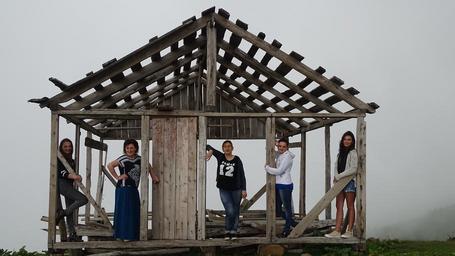 Keywords: georgia mountains fog cottage beauty landscape countryside women hut
