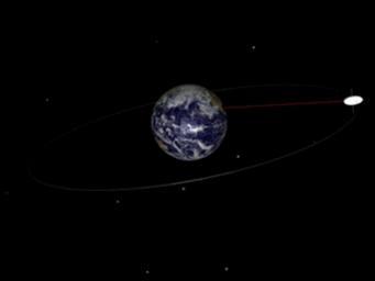 | Keywords: Geosynchronous orbit.gif Geosynchronous orbit animation This shows a satellite in a geosynchronous actually geostationary orbit about the Earth When orbiting at a certain height a satellite's period of rotation is the same as the Earth's exactly one day If the satellite is orbiting above the equater as here it appears from the Earth not to move hovering at the same point in the sky Communication satellites have geosynchronous orbits so the satellite dishes which communicate with them do not have to move but can be pointed permanently at the point in the sky where they appear own Talifero 2010 01 09 19 05 13 Celestial mechanics Orbits Animated gifs of orbits Animations on black background |