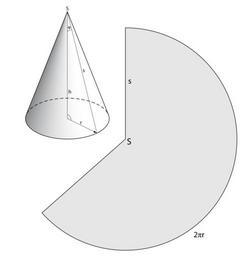 Keywords: Gerader Kreiskegel mit Mantel.svg en Right cone with lateral surface de Gerade Kreiskegel mit abgewickeltem Mantel own Oldracoon 2010-10-17 Cone geometry SVG geometry Geometric shapes