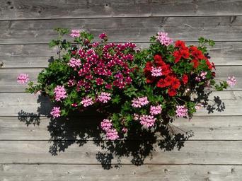Keywords: geranium balcony plant ornamental plant colorful color pelargoniums hauswand wood decoration beautification petunia