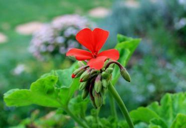 Keywords: geranium flower bloom red bright foliage green stem garden red splash