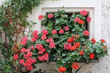 Keywords: geranium pelargoniums window old old window facade flowers historically flower box romance nostalgia picturesque individual ornament old town