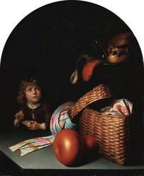 | Keywords: Gerard Dou Still Life with a Boy Blowing Soap-bubbles.jpg c 1635 1636 Oil on canvas 48 x 39 7 cm Institution National Museum of Western Art Tokyo accession number object history credit line user Rlbberlin Still-life own PD-old-100 ImageNote 1 368 159 75 62 495 600 2 Skull ImageNoteEnd 1 ImageNote 2 308 126 48 76 495 600 2 hourglass ImageNoteEnd 2 ImageNote 3 72 389 50 48 495 600 2 Soap-bubbles ImageNoteEnd 3 17th-century genre paintings Dou 17th-century paintings in Japan Still Life with a Boy Blowing Soap-bubbles by Gerard Dou Chiaroscuro still-life paintings Homo Bulla Still life paintings of baskets 1630s paintings Paintings of Vanitas Hourglasses in art 17th-century childhood in painting Lagenaria siceraria in art Paintings of baskets |