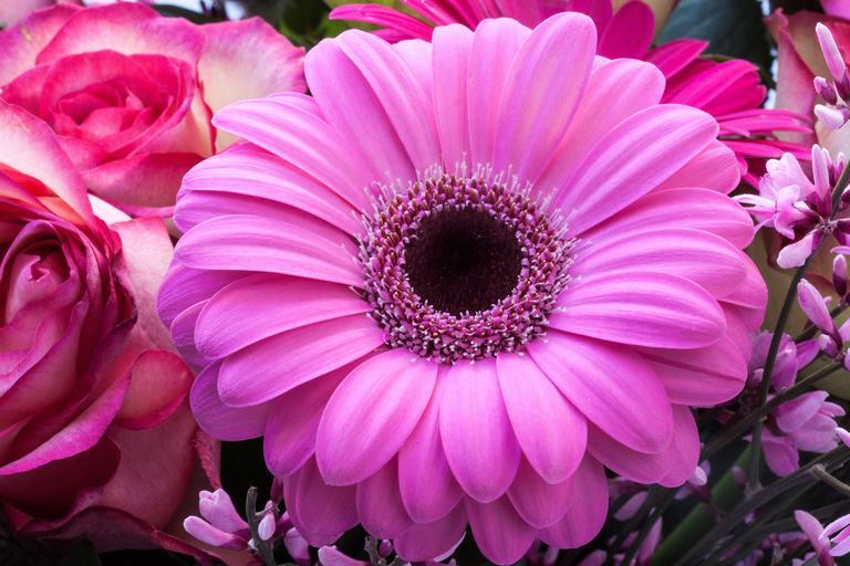 Keywords: gerbera composites roses broom genista flowers spring nature plant pastellfarben salmon pink red bouquet fill lush decorative macro