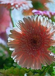 Keywords: gerbera flower plant flora nature cut flower decorative flower bouquet of flowers bunch of flowers closeup lighting inside a flower the delicacy cream flesh shadows arts a flower for her gentle szklarniowy flower