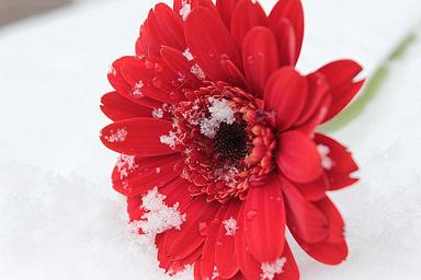 Keywords: gerbera red blossom bloom flower romantic bloom schnittblume drop of water snow