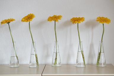 Keywords: gerbera yellow flower blossom bloom schnittblume yellow flower orange decoration sunny nature bloom yellow orange vases series five deco