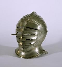 | Keywords: German - Close Helmet of the "Maximilian" Style - Walters 51465 - Three Quarter.jpg A close helmet encloses the head as opposed to a sallet This type combines the rounded Italian shape with the crisp vertical fluting crest and corded borders that evolved from German late-medieval armor The fluting deflected projectiles and made the plate stronger without adding weight At 5 lb 11 7 oz this piece is not heavy for a close helmet The style is associated with Emperor Maximilian I reigned 1493-1519 Archduke Albert's famous ancestor who was keenly interested in improving armor technology between 1520 1525 steel cm 31 6 23 2 33 accession number 51 465 2304 Sale American Art Association New York November 19 1921 no 307 Henry Walters Baltimore 1921 mode of acquisition unknown Walters Art Museum Henry Walters Acquired by Henry Walters 1921 place of origin Nuremberg Germany Walters Art Museum license Armour in the Walters Art Museum Close helmets Armour of Germany Baroque art in the Walters Art Museum German art in the Walters Art Museum 16th-century helmets |