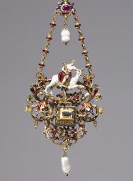 | Keywords: German - Pendant with a Personification of Fortitude - Walters 44622.jpg The chain and attachments with surrounding flourishes are 19th-century repairs and embellishments probably by Reinhold Vasters 1827-1909 ca 1625 1650 Baroque gold enamel diamonds rubies pearls cm 12 7 accession number 44 622 29648 Trustees of the Pierpont Morgan Library date and mode of acquisition unknown Walters Art Museum Gift of the Trustees of the Pierpont Morgan Library in memory of Miss Belle Da Costa Greene 1951 Jewelry - Ancient to Modern The Walters Art Gallery Baltimore 1979-1980 Court Jewels of the Renaissance 1500-1630 Victoria and Albert Museum London 1980-1981 Artful Deception The Craft of the Forger The Walters Art Gallery Baltimore; Edsel Eleanor Ford House Grosse Pointe Shores; Dallas Museum of Art Dallas; Oklahoma City Museum of Art Oklahoma City; Portland Museum of Art Portland; The Fine Arts Center at Cheekwood Nashville; Phoenix Art Museum Phoenix; Columbia Museum of Art Columbia; Elvehjem Museum of Art Madison; Crocker Art Museum Sacramento; Memorial Art Gallery of the University of Rochester Rochester; The Barnum Museum Bridgeport 1987-1992 place of origin Aachen Germany Walters Art Museum license Baroque art in the Walters Art Museum German art in the Walters Art Museum Reinhold Vasters Media contributed by the Walters Art Museum needs category review |