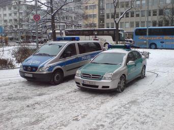 | Keywords: German Police Vehicles In Liveries.jpg Vehicles of the Police of Hesse in the new blue and the old green livery seen in Frankfurt Germany Note that the green-silver livery is itself an update - earlier up to about the 1990s vehicles used green-white However the white colour apparently significantly lowered the resale price of the cars once the police sold them off Not sure if that's really true though self-photographed 2009-12 Uploader Photos taken by Ingolfson Police automobiles of Hesse Paulsplatz Frankfurt Mercedes-Benz Vito W639 in police service Opel police automobiles Opel Vectra C Winter 2009-2010 in Frankfurt am Main Berliner Straße Frankfurt am Main 2009 in Frankfurt am Main 2009-12-xx |