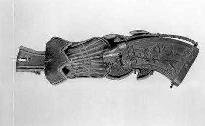 | Keywords: German - Port-Flask with Powder Flask and Bullet-and-Cartridge Pouch - Walters 51558.jpg This port-flask is from a series made for members of the bodyguard of the lectors of Saxony Christian II reigned 1591/1601-11 or Johann Georg I reigned 1611-56 who used wheel-lock carbines The relief depicts a guard member carrying a ceremonial halberd ca 1610 leather ebony wood iron cm 39 21 accession number 51 558 39607 Henry Griffith Keasbey New York date and mode of acquisition unknown Sale American Art Association New York December 5 1924 no 23 Henry Walters Baltimore 1924 mode of acquisition unknown Walters Art Museum Henry Walters Acquired by Henry Walters 1924 place of origin Dresden Germany Walters Art Museum license Baroque art in the Walters Art Museum Weapons in the Walters Art Museum German art in the Walters Art Museum Gunpowder flasks Cartridge boxes |