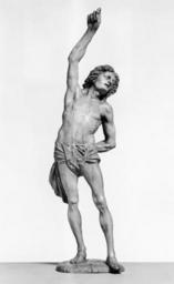 | Keywords: German - Saint Sebastian - Walters 61149.jpg According to legend Sebastian was a Roman soldier who refused to deny his Christian faith and worship the emperor as a god In consequence he was tied to a tree and shot with arrows He survived but was then beaten to death Sebastian's strained gesture with one arm extended presupposes the existence of a tree now missing probably also in wood Even in its awkwardness the saint's lean wiry body appears to be based on observation of nature between 1525 1540 Renaissance boxwood cm 40 9 accession number 61 149 24802 Henry Walters Baltimore date and mode of acquisition unknown Walters Art Museum Henry Walters Acquired by Henry Walters place of origin north Rhine in Germany Walters Art Museum license Renaissance sculpture in the Walters Art Museum German art in the Walters Art Museum Media contributed by the Walters Art Museum needs category review Statues of Saint Sebastian in the United States |