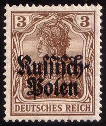 | Keywords: Germanrussia3pf1915.jpg Postage stamp for the parts of Russia Poland occupied by German empire 3 pfennigs 1915 Michel DR-PL 1 Почтовая ма ка Ге манской импе ии для оккупи ованных частей России Польши 3 пфеннига 1915 Michel DR-PL 1 own collection of User Nickpo 1915 Creator Paul Eduard Waldraff Scanned by User Nickpo 1917 German stamps review keep Overprints on Germania stamps 1915 stamps of Germany for Poland | ||||