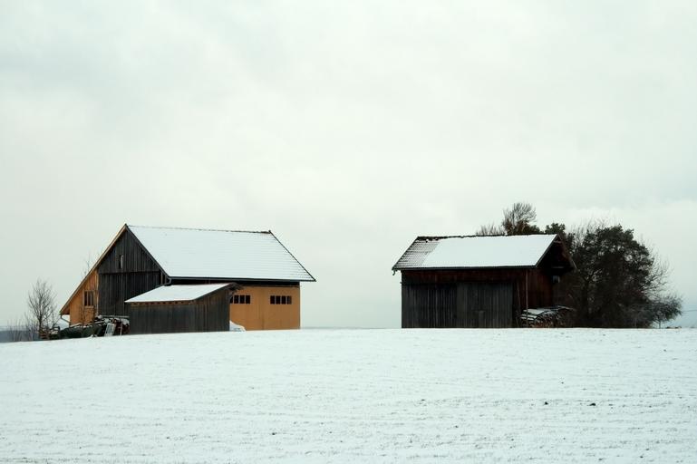 Keywords: germany bavaria farm barn shed hill sky clouds winter snow field nature snowy cold snow cover