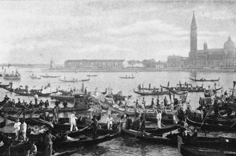 Keywords: Germany Before the First World War 1890 - 1914 HU68399.jpg en Germany Before the First World War 1890 - 1914<br/> The visit of Kaiser Wilhelm II and Kaiserin Auguste to Palestine in 1898 Snapshot taken by the Kaiserin from the Imperial Royal Yacht HOHENZOLLERN as it sailed from Venice Italy on 13 October A flotilla of gondolas bid farewell to the Royal Party San Giorgio Maggiore is visible in the background Photograph from a personal collection compiled by the Kaiserin and presented by her to Hugh 5th Earl of Lonsdale Auguste Viktoria Kaiserin of Germany 1898-10-13 HU 68399 205018345 http //media iwm org uk/iwm/mediaLib//7/media-7568/large jpg PD-old-70 Germany URAA date Author died in 1921 Associated people and organisations Auguste Viktoria Kaiserin of Germany Associated places Venice Veneto Italy Associated events Visit of Kaiser Wilhelm II and Kaiserin Auguste Viktoria to Palestine October 1898 Associated themes Germany pre-1914 Italy pre-1914 Palestine pre-1914 Associated keywords Royalty Towns and Cities tourism Lonsdale Hugh 5th Earl Of photographs Imperial War Museum Pre-1914 collection Images uploaded by Fæ Historical images of Venice Photographs by Augusta Viktoria of Schleswig-Holstein 1898 in Venice Exterior of St Mark's Basilica |