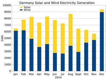| Keywords: Germany Electricity Generation from Wind and Solar Bar Chart-2014.svg translate yes en Comparison of wind power and solar power generated each month in Germany in 2014 Data from https //www entsoe eu/db-query/production/monthly-production-for-a-specific-country ENTSO-E 2015-05-06 own Delphi234 other versions cc-zero Uploaded with UploadWizard Renewable energy statistics of Germany 2014 in Germany | ||||