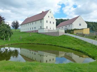 Keywords: germany landscape scenic sky clouds house barn farm rural grass pond water reflections summer spring nature outside country countryside
