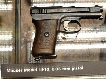 | Keywords: Germany Mauser pistol, 6.35 mm, Model 1910 - National World War I Museum - Kansas City, MO - DSC07780.JPG Handgun exhibited in the National World War I Museum at the Liberty Memorial 100 W 26th Street Kansas City Missouri USA Photography was permitted in the museum without restriction Daderot 2011-11-01 15 30 36 Daderot Handguns in the National World War I Museum Mauser M1910 | ||||