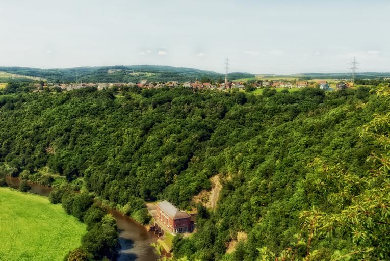Keywords: germany river forest trees woods nature outside country countryside rural sky clouds mountains