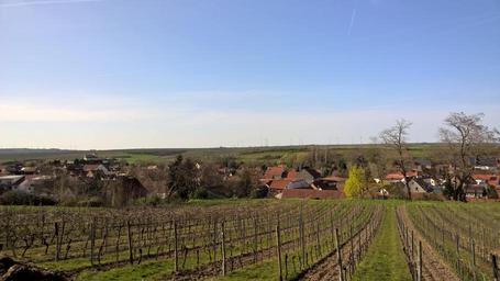 Keywords: germany sachsen wonnegau osthofen vineyards spring blue sky