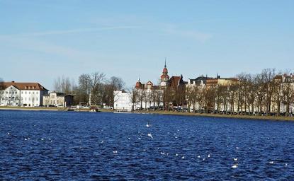 Keywords: germany town village buildings architecture summer spring trees ducks lake water sky clouds nature outside