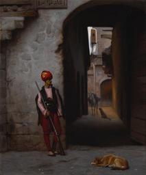 | Keywords: Gérôme, Jean-Léon - The Guard - Google Art Project.jpg 1824 1824 1904 1904 Jean-Léon Male 678061 Gérôme French 1824 - 1904 /collection/indianapolis-museum-of-art/artwork/the-guard-gerome-jean-leon/435861/ 33230 Gérôme Jean-Léon Artist /artist/jean-l C3 A9on-g C3 A9r C3 B4me/4125226/ 4125226 /collection/indianapolis-museum-of-art/ Indianapolis Museum of Art 342002 http //www imamuseum org/ 12/5/2011 9 43 50 PM /collection/indianapolis-museum-of-art/artwork/the-guard-gerome-jean-leon/435861/ 1889 1889 oil on canvas 435861 False 1889 3/24/2012 2 03 17 AM 55 220 http //www imamuseum org/mercury/load-artwork/33230 Delavan Smith Fund oil paintings 1880 1890 1889 False 0 83203125 Visual Works Paintings the-guard-gerome-jean-leon The Guard g oil on canvas 21 7/8 x 18 3/8 in special url_id GAH0SJsIPWu18w PD-old-100-1923 1904 Google Art Project works by Jean-Léon Gérôme 1889 paintings in the United States European paintings in the Indianapolis Museum of Art Orientalist paintings by Jean-Léon Gérôme Paintings of men standing outdoors |