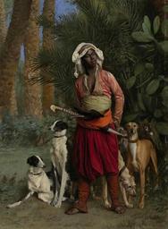 | Keywords: Gérôme - The Negro Master of the Hounds.jpg Artwork Creator Jean-Léon Gérôme de Der Neger The Negro Master of the Hounds De zwarte hondenverzorger alternate title 1871 technique Oil canvas cm 33 25 Private collection object history credit line signed bottom right J L GEROME accession number http //www christies com/LotFinder/lot_details aspx intObjectID 5403387 PD-old-100-1923 Paintings of animals by Jean-Léon Gérôme Orientalist paintings by Jean-Léon Gérôme 1871 orientalist paintings Africans in 19th-century art 19th-century paintings of dogs Paintings of men with dogs Portrait paintings of standing men Sighthounds in art 1870s paintings from France Paintings with signatures lower right 1870s oil on canvas paintings 1870s paintings in private collections Paintings of people in nature Files by User BrokenSphere |