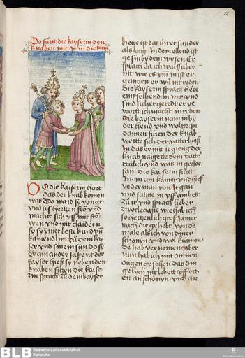 | Keywords: Gesta Romanorum - Donaueschingen 12r.jpg en Gesta Romanorum - Donaueschingen 145 a manuscript from Upper Swabia in Germany from circa 1452 de Titel Gesta Romanorum - Donaueschingen 145 Erschienen Oberschwaben um 1452 Online-Ausg Karlsruhe Badische Landesbibliothek 2012 Umfang 97 Bl ; 30 5 x 21 5 cm Anmerkung Original Handschrift auf Papier - Schreibsprache schwäbisch URN urn nbn de bsz 31-28735 info Signatur Donaueschingen 145 1452 http //digital blb-karlsruhe de/blbhsl/Handschriften/content/titleinfo/585870 Badische Landesbibliothek author other versions PD-Art Gesta Romanorum Uploaded with UploadWizard |