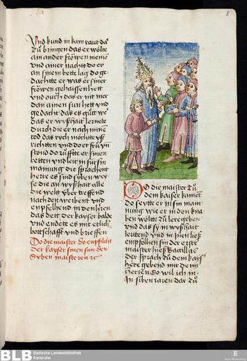 | Keywords: Gesta Romanorum - Donaueschingen 8r.jpg en Gesta Romanorum - Donaueschingen 145 a manuscript from Upper Swabia in Germany from circa 1452 de Titel Gesta Romanorum - Donaueschingen 145 Erschienen Oberschwaben um 1452 Online-Ausg Karlsruhe Badische Landesbibliothek 2012 Umfang 97 Bl ; 30 5 x 21 5 cm Anmerkung Original Handschrift auf Papier - Schreibsprache schwäbisch URN urn nbn de bsz 31-28735 info Signatur Donaueschingen 145 1452 http //digital blb-karlsruhe de/blbhsl/Handschriften/content/titleinfo/585870 Badische Landesbibliothek author other versions PD-Art Gesta Romanorum Uploaded with UploadWizard |