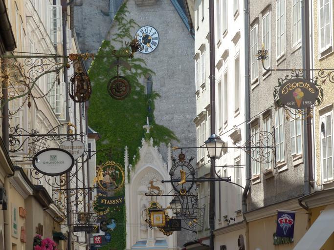 Keywords: getreidegasse salzburg alley road winding nasal signs shopping street lane