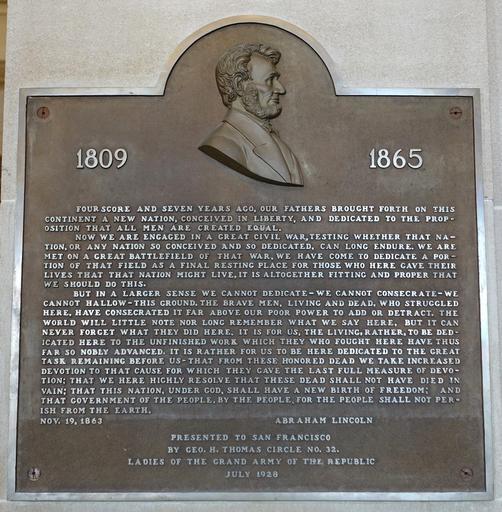 | Keywords: Gettysburg Address - San Francisco City Hall - DSC02807.JPG en Gettysburg Address - San Francisco City Hall San Francisco California USA 2015-05-14 20 02 51 own Daderot other versions cc-zero Plaques in San Francisco City Hall Uploaded with UploadWizard |