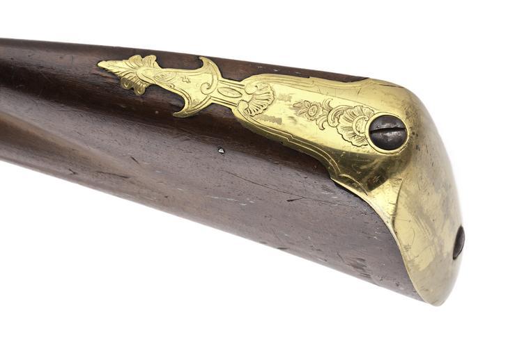 | Keywords: Gevär från 1770 - Livrustkammaren - 96823.tif LSH artwork Cassagnard Cassaignard bössmed Jean Rousset bössmed sv Rund slätborrad blånerad pipa med åttsidig kammare oblånerad svansskruv bakåt avsmalnande svansskruvblad med kantlinjer Kammarens översida med blad- och blomrankor av påslaget guld Under kammaren inslaget otydligt märke T R under stjärna samt kontrollstämpel NC Nicolas Carterons St Etienne Stöckel II nr 1416 samt ROUSSET <br/>Riktmedel Pipans översida med platt ribba fram till det saknade kornet <br/>Fästning Fem st häften Pipan fäst med krysskruv samt fyra pipstift av stål <br/>Flintlås med plant låsbleck och hane båda med fasade kanter Bakom och på hanen graverade voluter och snäckor Graverad signatur Casaignard // Nantes Något inböjd hangren Hanens överkäke med bladgravyr Käkskruvens huvud kulformigt och tillplattat upptill graverad dekor liknande granatäpple Eldstål med åsad baksida och fals Eldstålsfjäder med fasade kanter balusterformigt löv <br/>Fästning Två låsskruvar <br/>Kort svagt böjd avtryckare <br/>Brun helstock av trä bok Kolv av fransk typ Framstocken profilerad Snidad bladdekor vid svansskruvblad och spetsrörka Beslag av förgylld mässing Bakplåt och konturera flik på kolvryggen Tungan avslutas med två utstående flikar och palmett graverad dekor två blånerade låsskruvar På kolvhalsen kartuschformiga inläggningar av silvertråd Sidbleck av mässing konturerat med graverad rokokodekor Fyra runda rörkor slät spets Varbygel av mässing med graverad dekor på bygeln Den främre armen avslutas med asymmetriskt blad den bakre med rundad spets <br/>Tillbehör <br/>Laddstock l 1405 mm av trä framtill konisk original caption Gevär från 1770 <br/> Nyckelord Mässing ca 1770 steel e12 - eldvapen - pipa och lås material stål - silver e8 - eldvapen - stockdekor material silvertråd - brass e7 - eldvapen - stockbeslag material mässing - gold e5 - eldvapen - pipdekor material guld - beech e3 - eldvapen - stock material bok g 3250 size mm 1417 pipa size mm 1810 LRK Casaignard Nantes anv e2 - eldvapen - lås; Cassagnard Cassaignard ROUSSET anv e1 - eldvapen - pipa; Jean Rousset N C anv e1 - eldvapen - pipa; Nicolas Carteron T R under stjärna Jean Rousset Casaignard Nantes anv e2 - eldvapen - lås; Cassagnard Cassaignard ROUSSET anv e1 - eldvapen - pipa; Jean Rousset N C anv e1 - eldvapen - pipa; Nicolas Carteron T R under stjärna Jean Rousset place of origin Nantes S t Etienne original filename lm_dig12937 40168 inventory number LRK 3622 96823 CC-BY-SA Jens Mohr <gallery caption Different images of same object > File Flintlås från 1770 - Livrustkammaren - 96817 tif File Flintlås från 1770 - Livrustkammaren - 96819 tif File Gevärpipa från 1770 - Livrustkammaren - 96822 tif File Gevär - Livrustkammaren - 96816 tif File Gevär från 1770 - Livrustkammaren - 96821 tif File Gevär - Livrustkammaren - 96815 tif File Gevär från 1770 - Livrustkammaren - 96818 tif File Flintlås från 1770 - Livrustkammaren - 96820 tif </gallery> Brass Flintlock muskets images from Livrustkammaren Jens Mohr Media contributed by LSH dim-with multiple size templates Media contributed by LSH unmatched creator Media contributed by LSH 2014-11 |