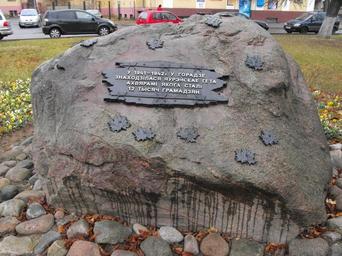 | Keywords: Ghetto Baranovichi st Gritzevtza 03.jpg ru емо иальный камень на месте главных во от Ба ановичского гетто по ул Г ицевца аходится на Т-об азном пе ек ёстке улиц Г ицевца и Ца юка позади Дома офице ов 2011-11-13 own Vadim Akopyan 53 129703 26 013093 cc-zero Uploaded with UploadWizard Ghetto Baranavičy Holocaust memorials in Baranavičy |