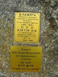 | Keywords: Ghetto Braslaw 1c.jpg ru Валун установленный уцелевшими ев еями Б аслава на ев ейском кладбище в 1945 году в память об узниках Б аславского гетто убитых немецкими нацистами и полицаями во в емя Холокоста Впоследствии на камне была ук еплена табличка с текстом аходится внут и ог ады ев ейского кладбища в Б аславе на улице Дзе жинского возле дома 77 нап отив дома 52 2012-07-26 own Avner cc-zero Ghetto Braslaŭ Jewish cemeteries in Braslaŭ Uploaded with UploadWizard | ||||