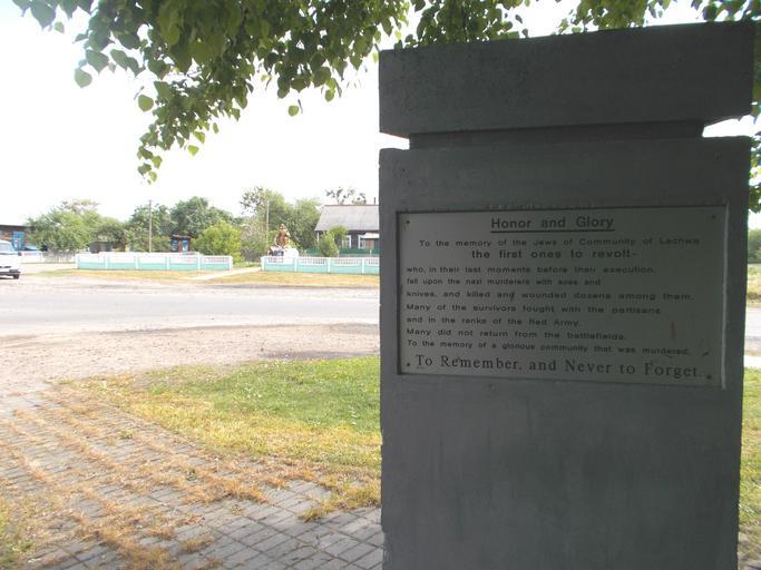 | Keywords: Ghetto Lakhva (Brest Region) 1g.jpg ru Памятник ев еям Лахвы восставшим в гетто п отив нацистов аходится на цент альной площади де евни 2014-05-10 10 42 33 own Avner 52 213162 27 101027 cc-zero Ghetto Lachva Luniniec District Uploaded with UploadWizard |