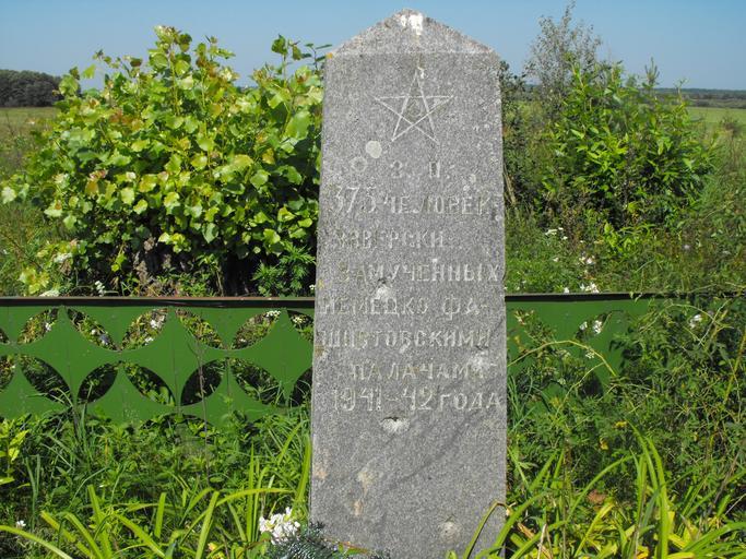 Keywords: Ghetto Lyubcha e02.jpg ru Памятный знак на месте массового убийства нацистами 375 ев еев около любчанского кладбища 2011-08-27 own Vadim Akopyan cc-zero Uploaded_with_UploadWizard Ghetto Liubča Jewish cemeteries in Liubča