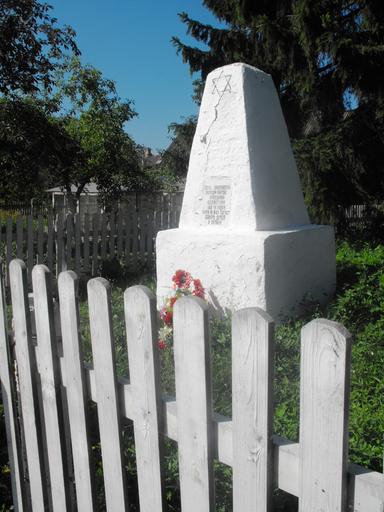 | Keywords: Ghetto Pogost (Soligorsk District) 1c.jpg ru Один из двух памятников на б атских могилах ев еев де евни Погост Солиго ского айона Бела уси убитых во в емя Холокоста а табличке с надписью указано число убитых - 180 человек 2016-06-27 own Avner other versions 52 849986 27 653183 cc-zero Ghetto Pogost Soligorsk District |