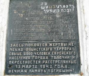 | Keywords: Ghetto Tolochin 2a.jpg ru Π Π°Π΄ΠΏΠΈΡΡ Π½Π° ΠΏΠ°ΠΌΡΡΠ½ΠΈΠΊΠ΅ ΠΈΠ΄ΠΈΡ ΠΈ Ρ ΡΡΡΠΊΠΈΠΉ Π½Π° ΠΌΠ΅ΡΡΠ΅ Ρ Π°ΡΡΡΡ Π΅Π»Π° Π΅Π²Ρ Π΅Π΅Π² Π’ΠΎΠ»ΠΎΡΠΈΠ½Π° Π² ΠΌΠ°Ρ ΡΠ΅ 1942 Π³ΠΎΠ΄Π° own ΠΡ ΠΊΠ°Π΄ΠΈΠΉ Π¨ΡΠ»ΡΠΌΠ°Π½ 2007-06-09 Ghetto TalaΔyn Cc-zero |