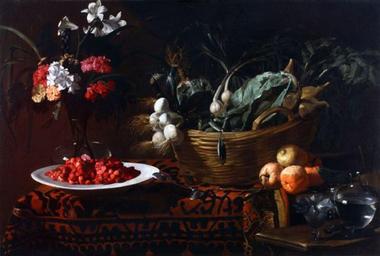 | Keywords: Giacomo Legi - Basket with vegetables, flower pot and a plate with strawberries on a table.jpg artwork title en Basket with vegetables flower pot and a plate with strawberries on a table circa 1625 “1645 oil canvas cm http //www iodonna it/attualita/primo-piano/2015/arte-cibo-mostra-bresciagallery-50212467497_9 shtml refresh_ce-cp PD-old-100 Giacomo Legi Still-life paintings of vegetables Baroque still life paintings of food Garlic in art Strawberries in art | ||||