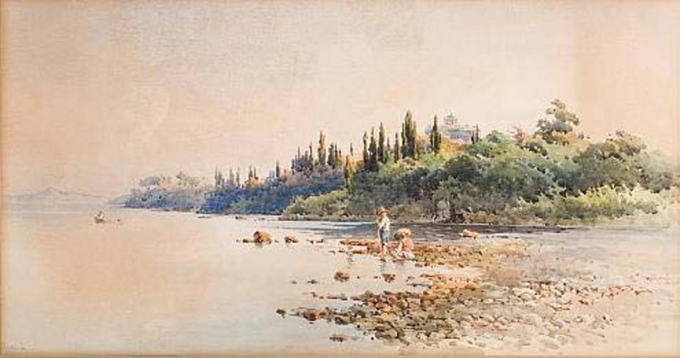 | Keywords: Giallinas (11).jpg ικροί ψαράδες στην Κέρκυρα υδατογραφία σε χαρτί 40 x 74 εκ http //www eikastikon gr/zografiki/gialinas html Creator Angelos Giallinas Reproduction of a painting that is in the public domain because of its age PD-old-auto 1939 Angelos Giallinas Historical images of Corfu |