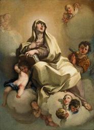 | Keywords: Giambettino Cignaroli - Madonna - WGA04875.jpg Artwork Creator Giambettino Cignaroli 1half other date century 18 Oil on canvas size cm 47 34 Unidentified private collection accession number object history credit line WGA link 4875 http //www wga hu/art/c/cignarol/madonna jpg http //www wga hu/html/c/cignarol/madonna html painting religious Italian 1701-1750 PD-old-100 WGA form painting WGA type religious WGA School Italian WGA time period 1701-1750 Giambettino Cignaroli 18th-century paintings in unidentified private collections 18th-century paintings not categorised by year 1701-1750 paintings 18th-century oil on canvas paintings 18th-century paintings of Virgin Mary Christian figures on clouds Paintings of Virgin Mary with putti |