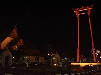 | Keywords: Giant Swing Bangkok 9-11-2007-P3200191.JPG The newly contructed Giant Swing at Wat Suthat Bangkok Taken on 9-11-2007 the night before the grand opening ceremony presided by King Bhumibol and Queen Sirikit Own 9-11-2007 2T 13 75184 N 100 50130 E type landmark_region TH Giant Swing Bangkok |